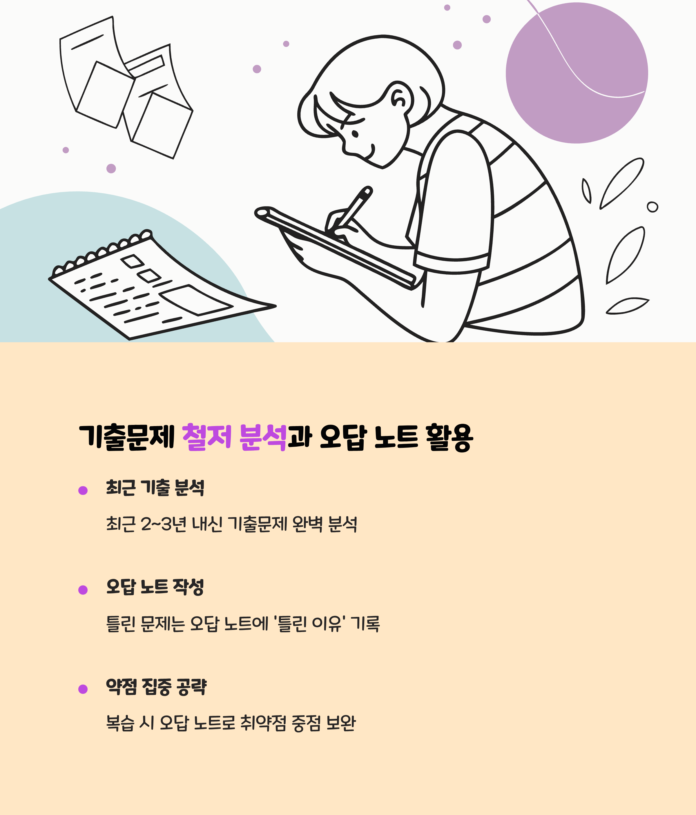 | 오답노트/실전모의고사 | 코넬식 노트법으로 복습-실전 풀이 병행 | 객관식/서술형 대응력 향상 |