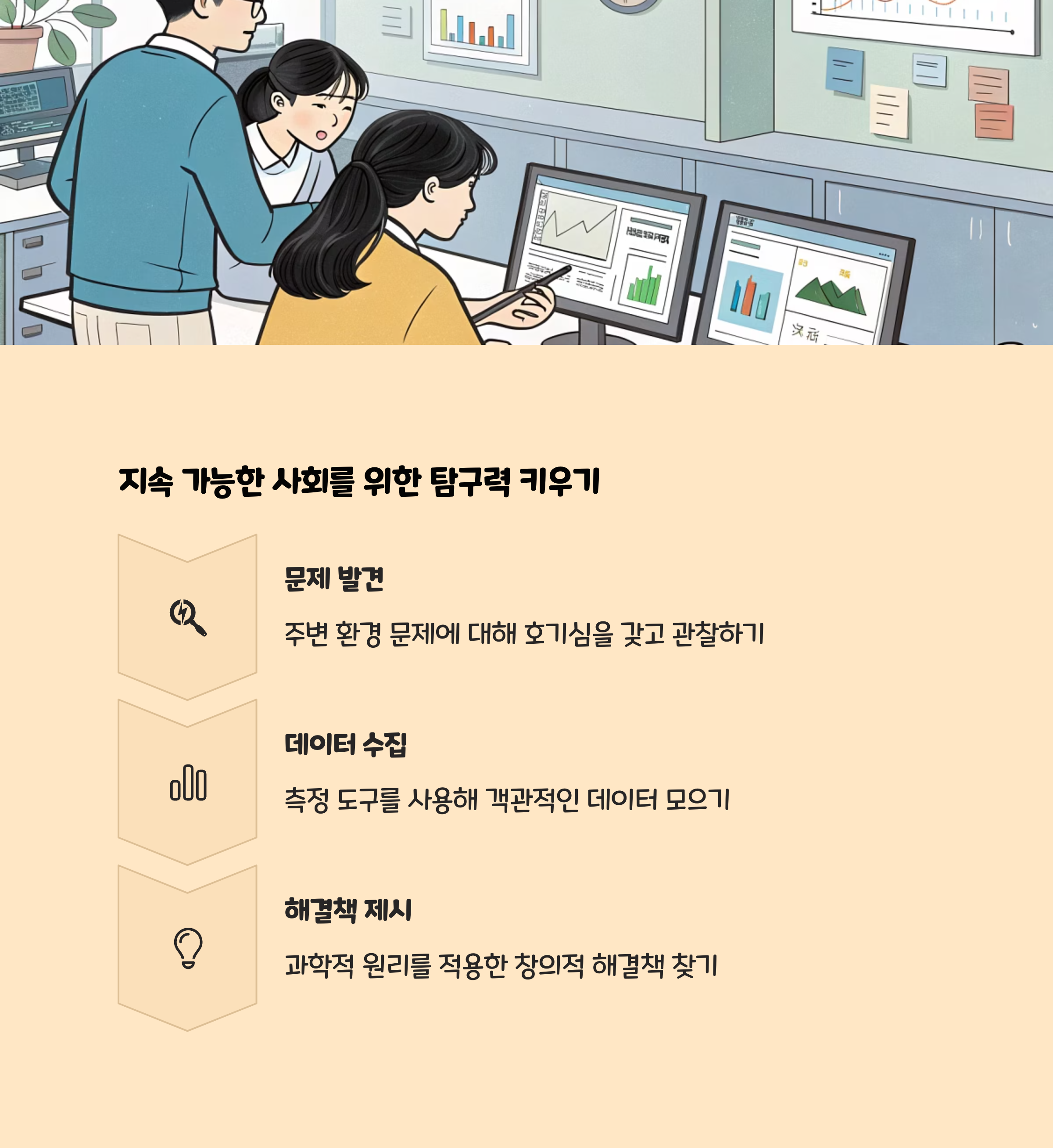 과학적 탐구는 문제 인식, 가설 설정, 실험, 자료 해석, 결론 도출의 과정을 통해 과학적 사고력을 키우는 방법입니다. 이 과정을 반복하며 논리적 사고와 창의성을 기릅니다.