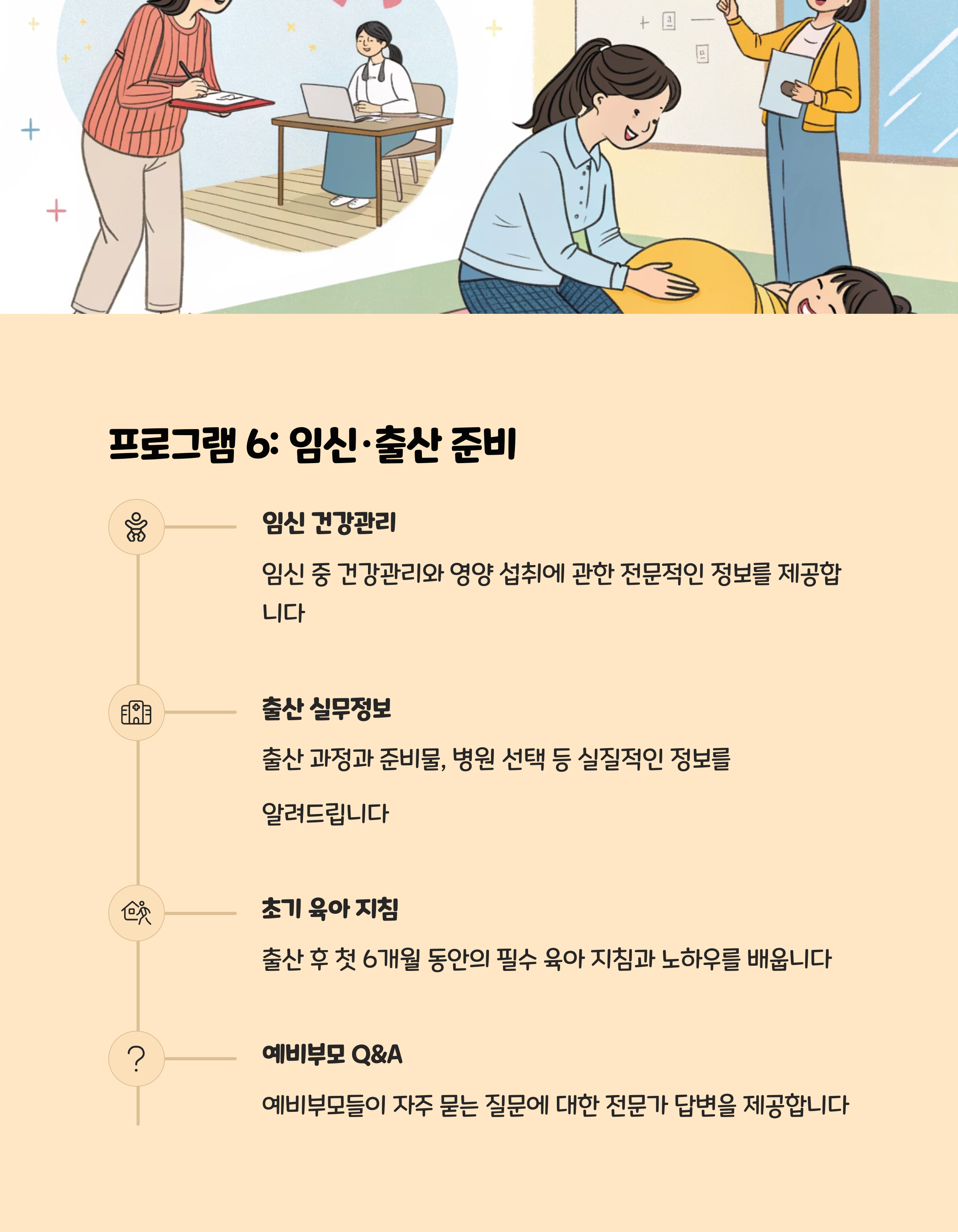 • 좋은 부모가 되고 싶어! 시리즈: 임신 준비기, 임신기, 신생아기 등 단계별로 세분화된 부모 튜토리얼 강좌가 마련되어 있습니다.