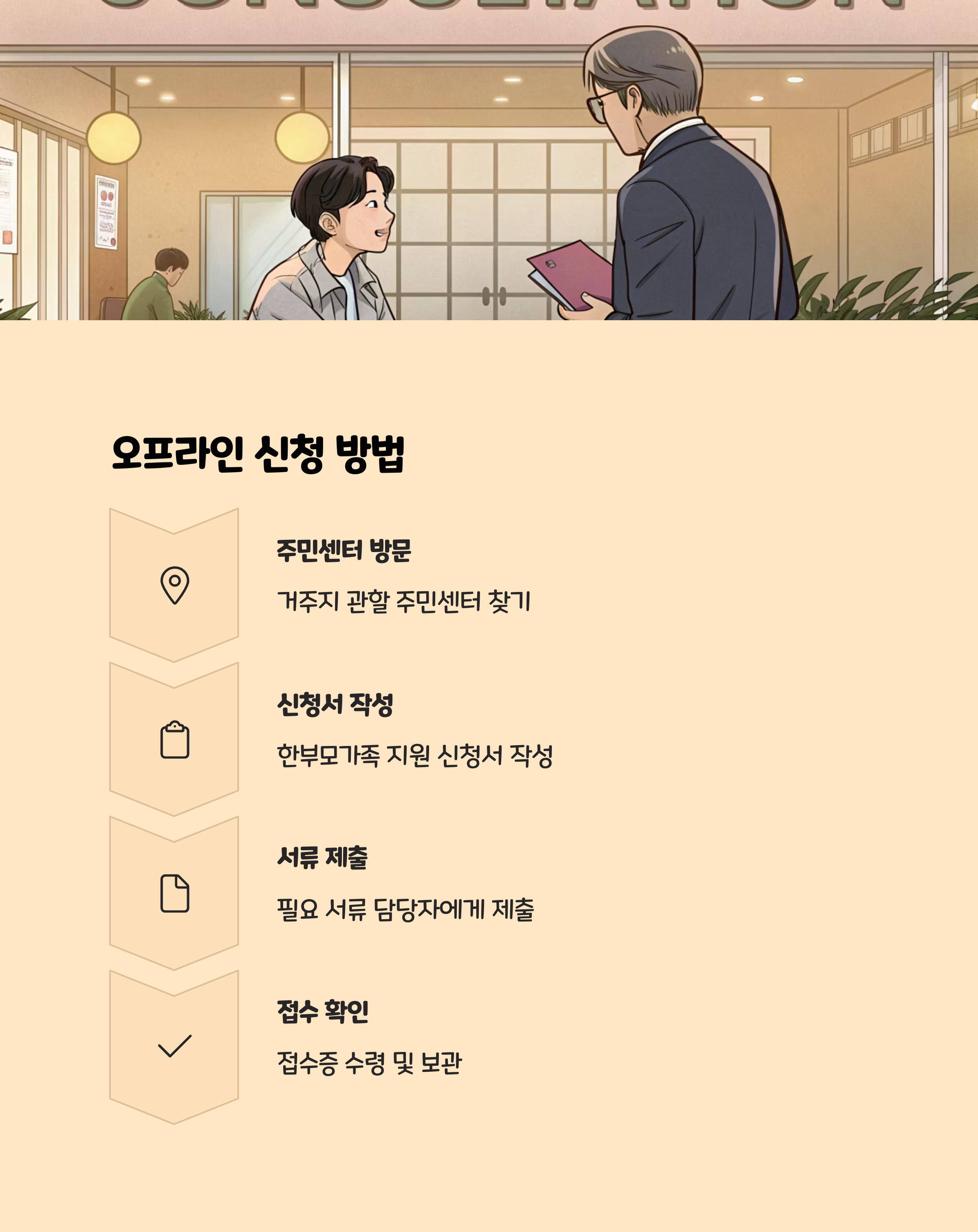 - 신분증, 가족관계증명서, 소득증빙자료 등 준비