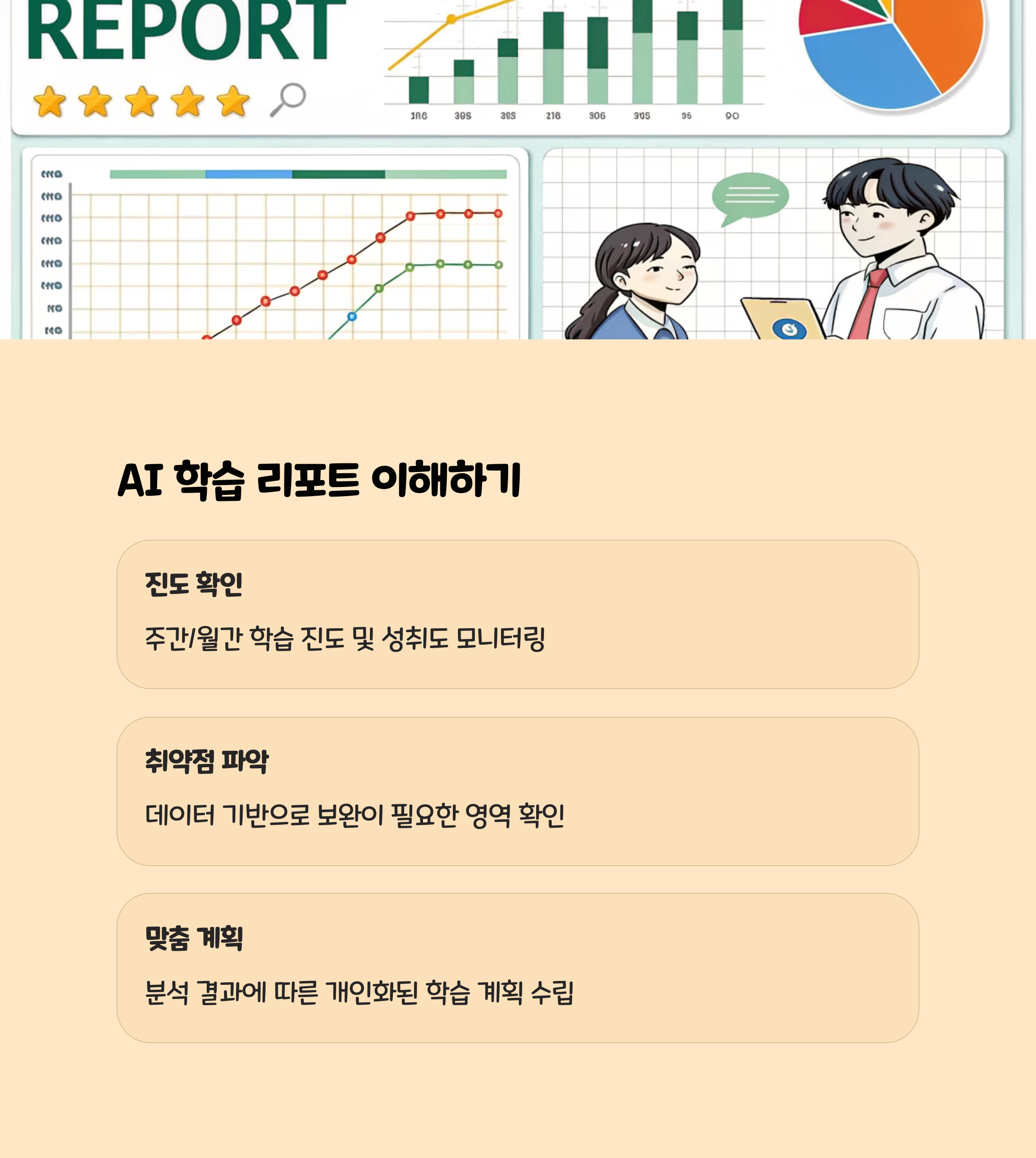 - 취약 단원, 학습 시간, 성취도 등 다양한 데이터를 확인할 수 있습니다.