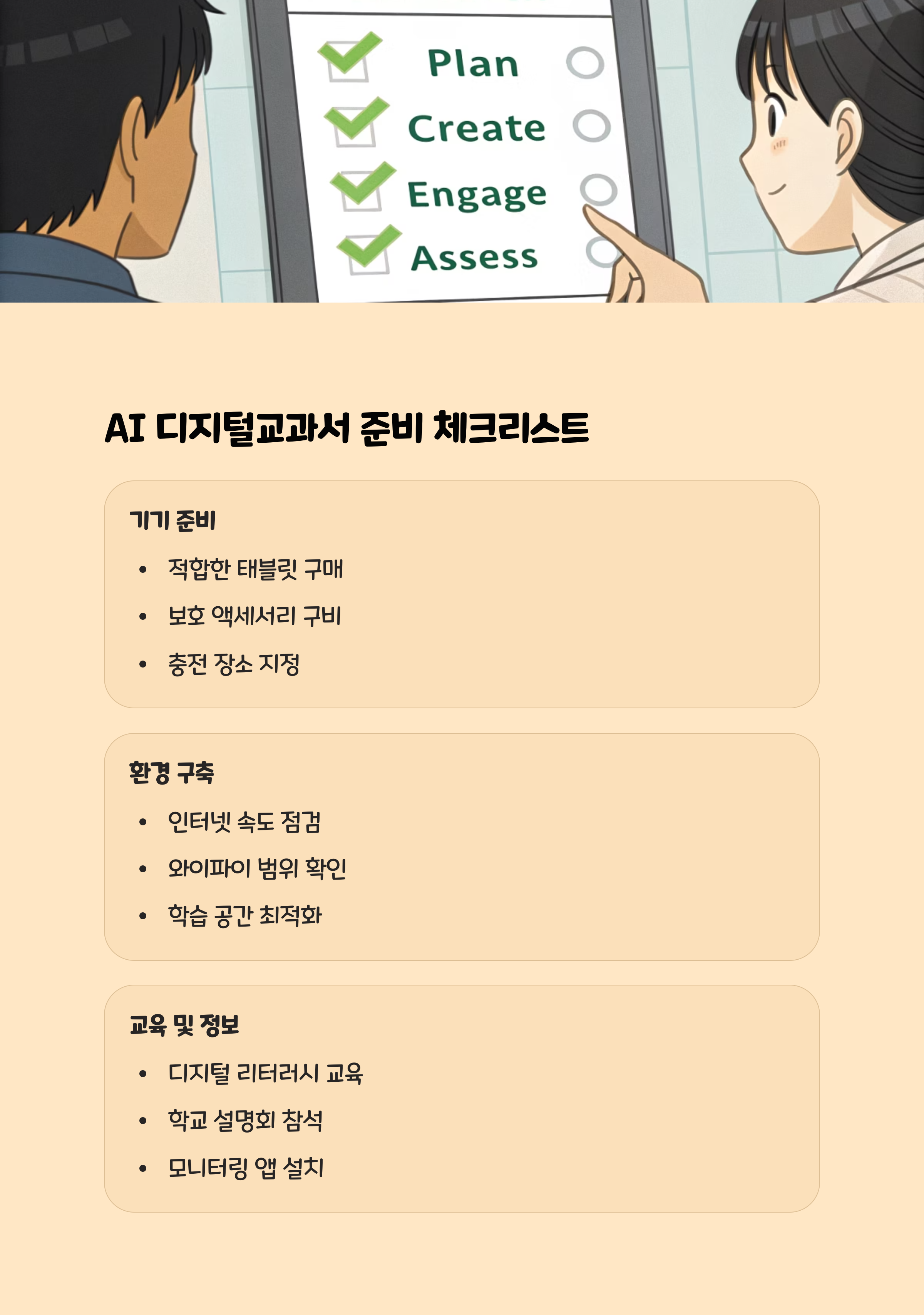 AI 디지털교과서 도입은 단순한 교재 변화가 아니라, 가정의 준비와 관심이 필수적인 교육 혁신입니다. 기기와 인터넷 환경을 미리 점검하고, AI 학습 리포트로 자녀의 학습을 주기적으로 관리하며, 디지털 리터러시 교육과 오프라인 활동의 균형을 꼭 챙기세요. 이런 준비가 뒷받침된다면, 우리 아이는 새로운 교실 환경에서 한발 앞서 성장할 수 있습니다. 불안함을 해결하는 가장 좋은 방법은, 변화에 맞춘 구체적인 준비와 꾸준한 관심입니다.